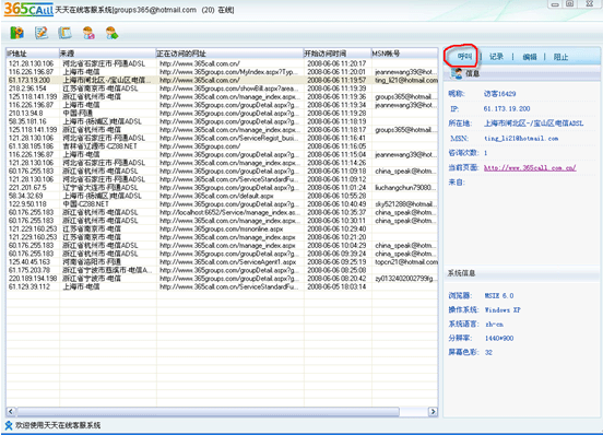 在客服端主窗口,選擇某個(gè)訪客(該訪客必須為在線狀態(tài)),然后點(diǎn)擊“呼叫”按鈕: