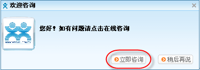 該訪客瀏覽的網(wǎng)頁出現(xiàn)主動(dòng)邀請框,訪客點(diǎn)擊“立即咨詢”就彈出咨詢窗口: