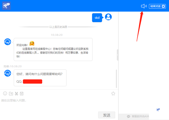 PC訪客端上線了消息聲音提醒,可提醒訪客快速瀏覽消息并回復(fù);點(diǎn)擊喇叭圖標(biāo)可開啟和關(guān)閉消息聲音提醒。